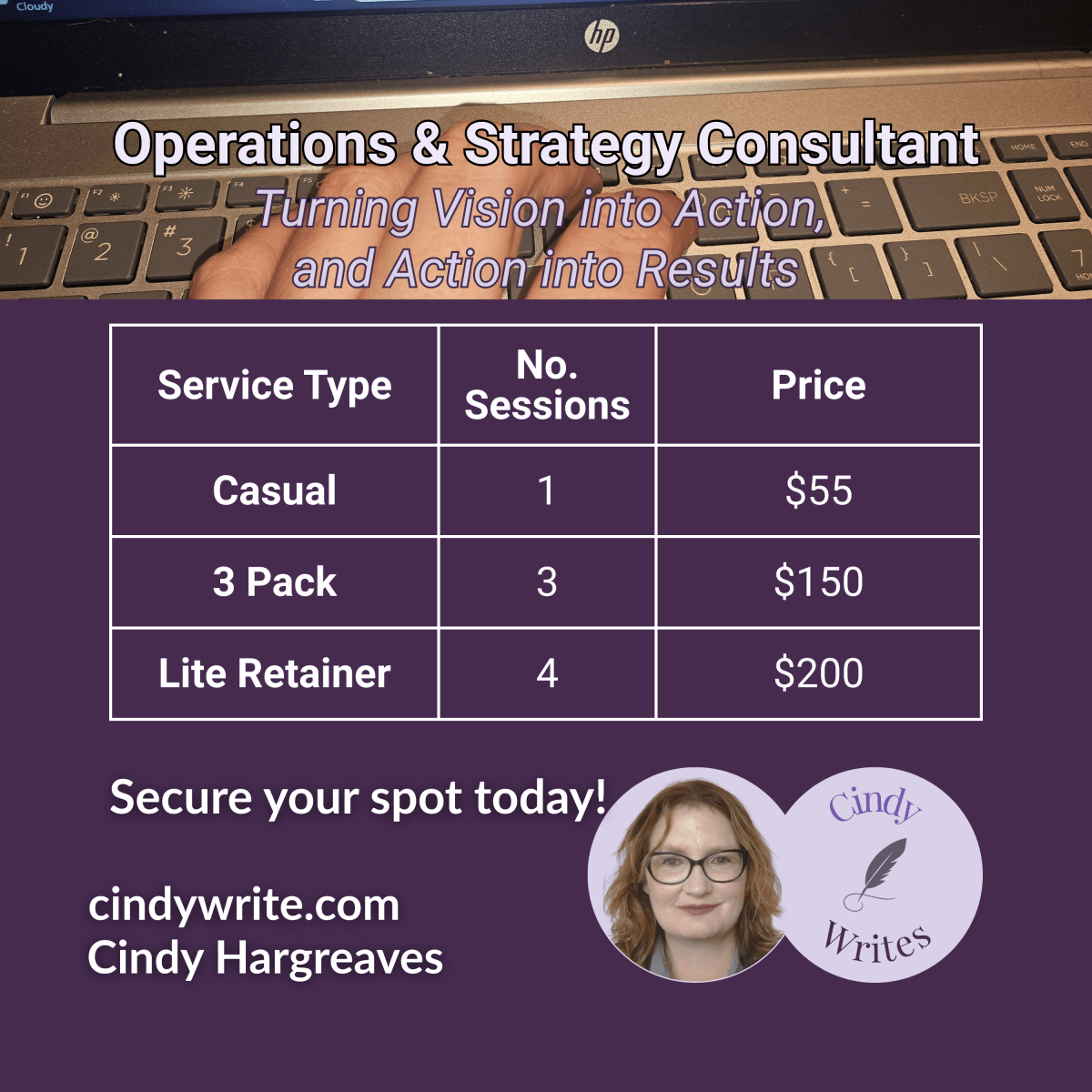 I’m an Operations and Strategy Consultant, author, and creative who helps business owners streamline operations, organise systems, and implement strategies that deliver measurable results.